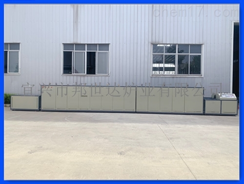 此电炉为推板式,隧道内上下布置加热元件加热根据工艺设定各温区温度,由推进器逐一把料盒推入炉体烧结。