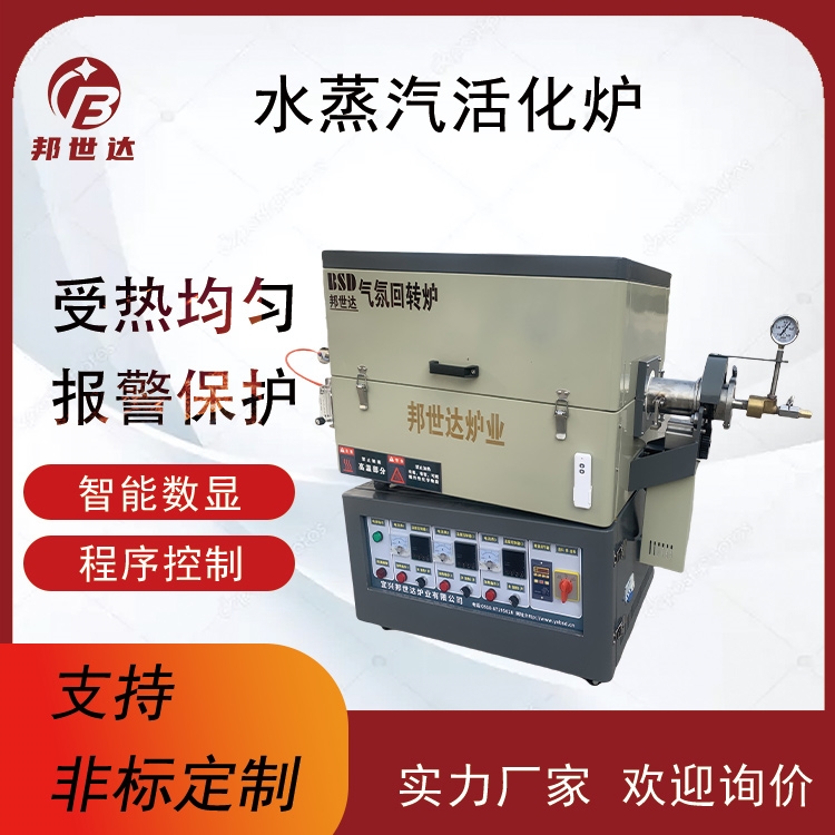 注:水蒸汽活化炉 气氛回转炉 用于科研院所实验 有效装料5升其他更多型号规格可以根据用户实际需求非标定制,价格仅参考,欢迎咨询详谈。