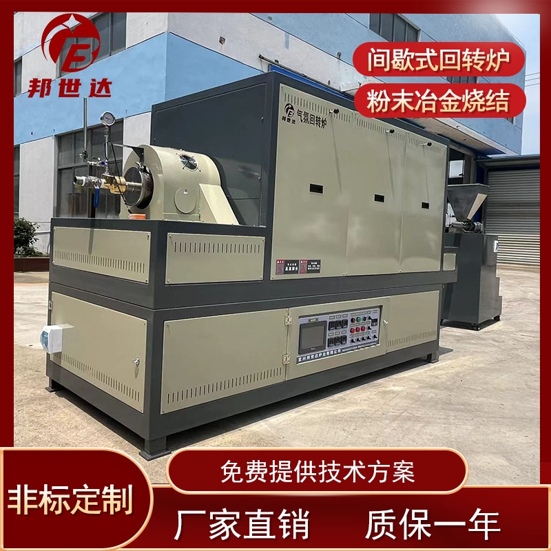 气氛回转炉,主要适用于粉料、颗粒的动态烧结使物料受热更均匀、烧结时间缩短、能耗降低、品质高等优点。